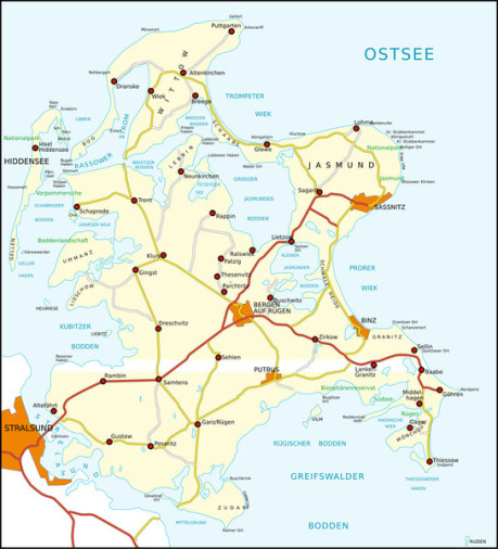 Aus Mittel- und Süddeutschland fahren Sie auf der A 19 bis zum Autobahnkreuz Rostock, dort wechseln Sie auf die A20 bis Stralsund. Aus Nord- und Westdeutschland fahren Sie auf der A1 bis Lübeck, dann weiter auf der A 20 bis Stralsund. Von hier fahren Sie auf der B 96 über die Rügenbrücke durch bis Binz.